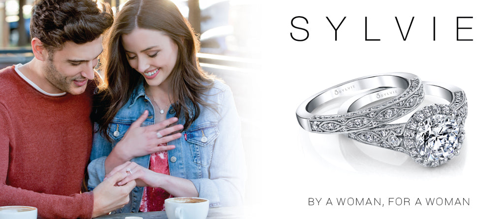Sylvie 14K White Gold "Jayla" Solitaire Engagement Ring with Hidden Halo & Pave Diamond Shank 0.69ct Total Diamond Weight Made to Order, please allow 4-6...