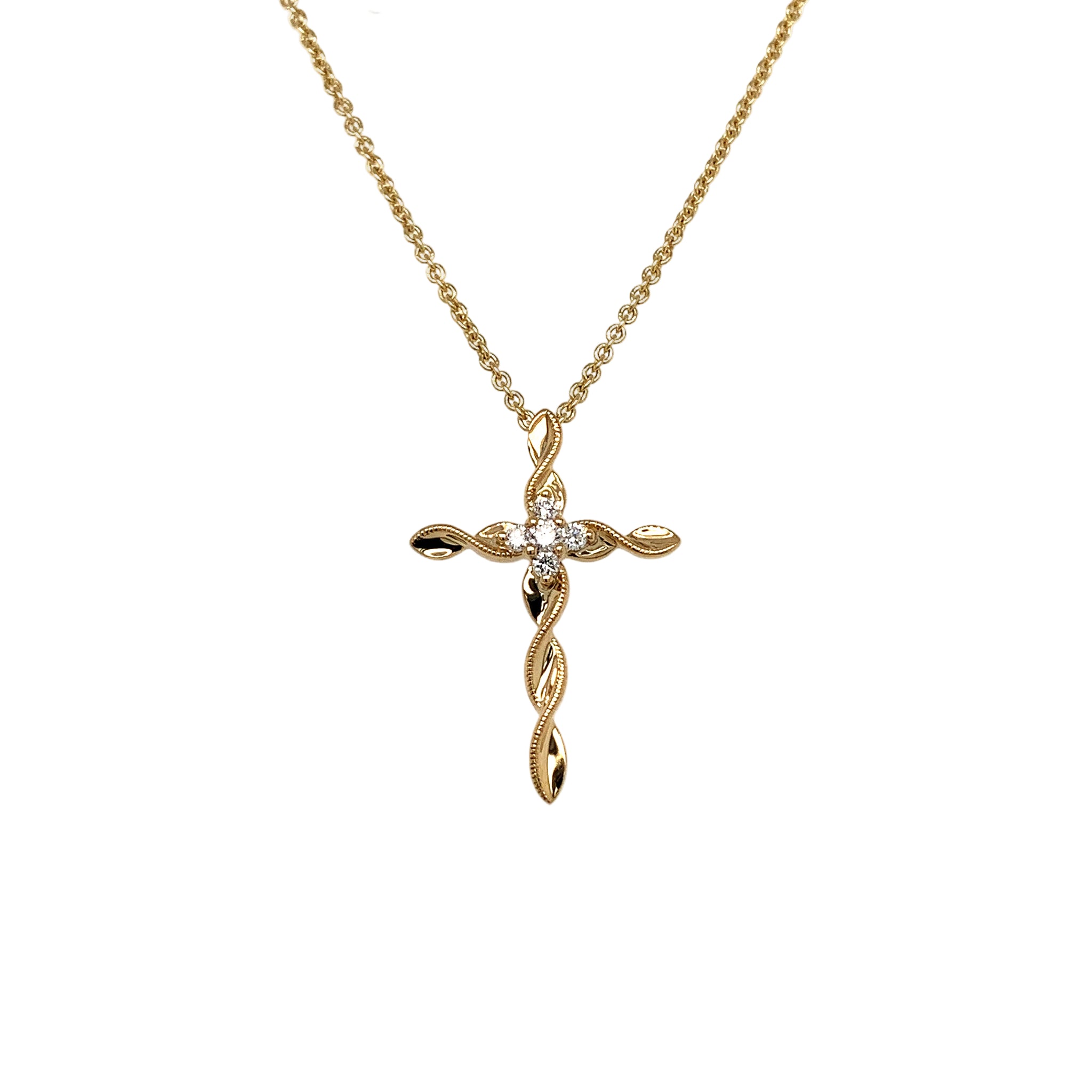 14K Yellow Gold Twist Design Diamond Cross Necklace