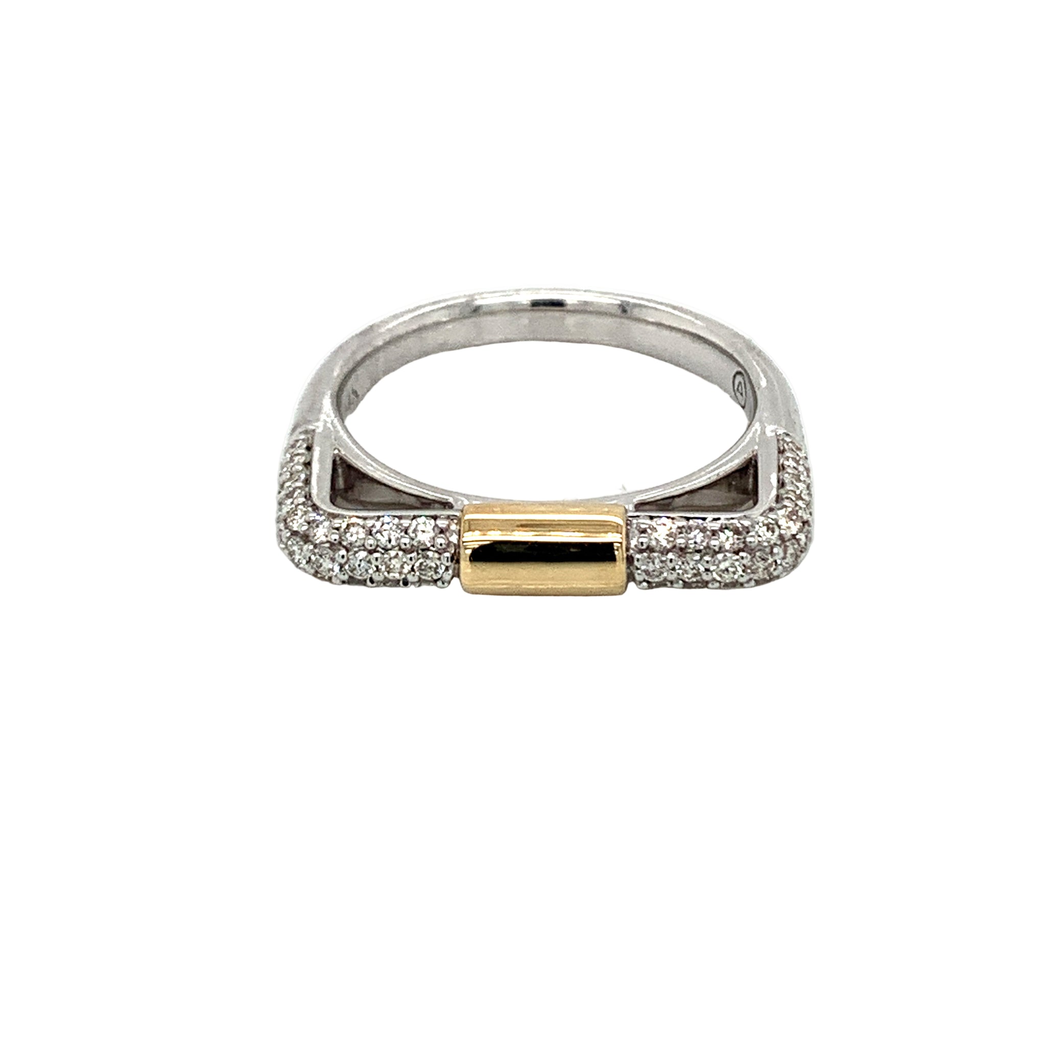 14K White & Yellow Gold Diamond Pave Bar Ring