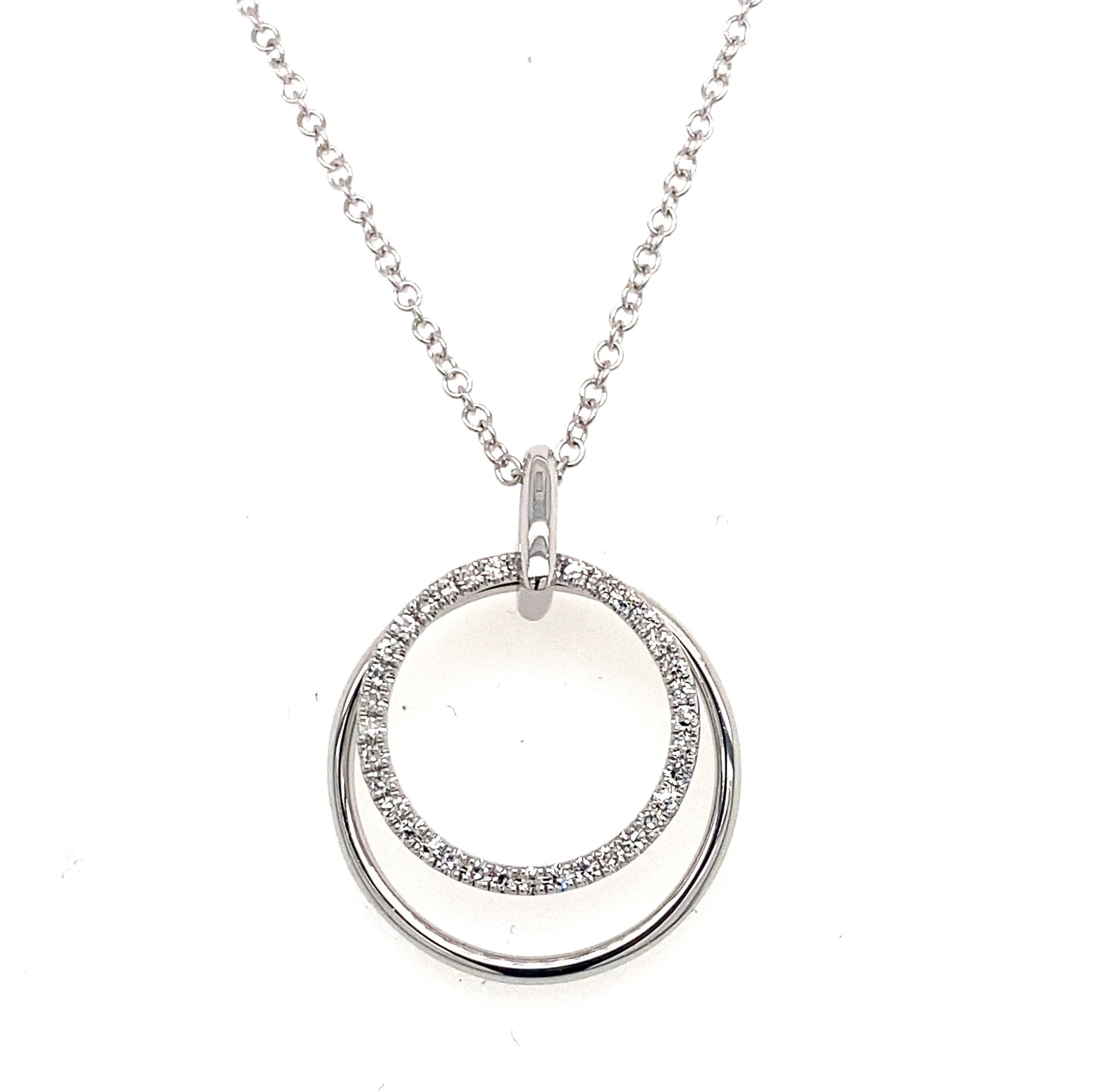14K White Gold Diamond Double Circle Necklace