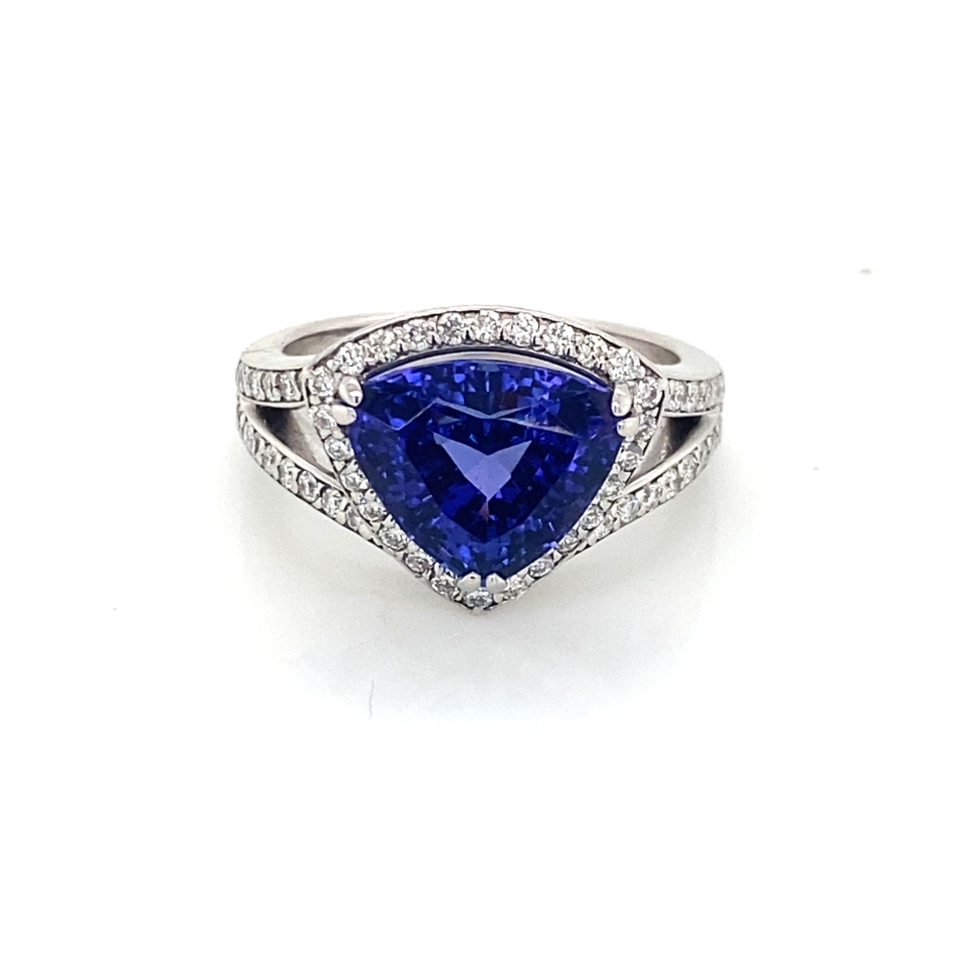 18K White Gold Trillion Cut Tanzanite & Diamond Ring
